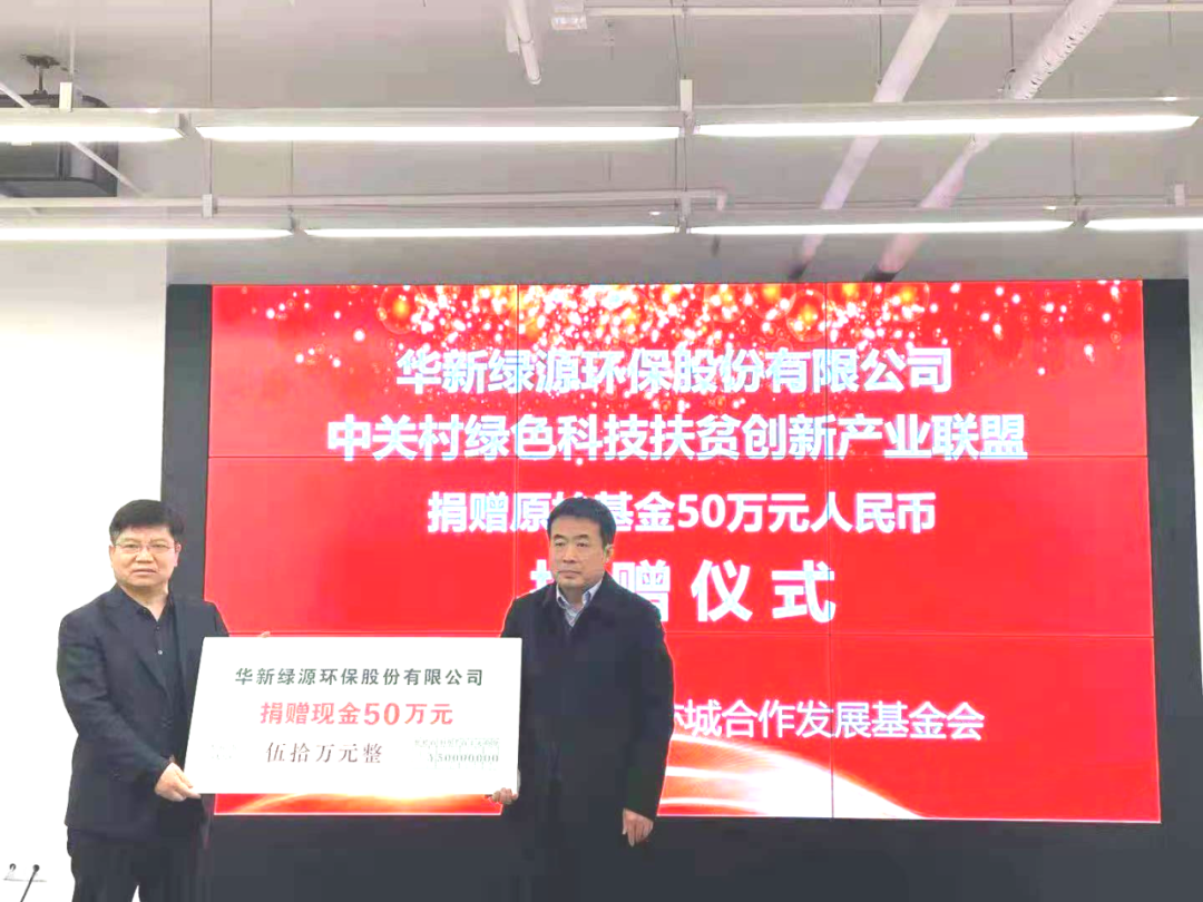 2021年3月18日下午,北京亦城合作發(fā)展基金會扶貧濟困專項基金管理委員會(以下簡稱“扶貧濟困專委會”)授牌儀式暨中關(guān)村綠色科技扶貧創(chuàng)新產(chǎn)業(yè)聯(lián)盟、華新綠源環(huán)保股份有限公司捐贈儀式,在北京經(jīng)開區(qū)OBE科技園區(qū)舉行。